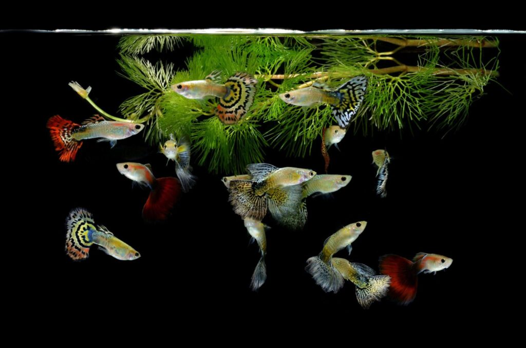 Livebearing fish like Guppys, Platys, and Mollys, make fun pets and perfect introductions into the aquarium keeping hobby. Affordable and available in a variety of colors and fin shape, these social fish make a great start for a community tank. If you set up a breeding colony with a quality filter, a consistent heater, and plenty of places to hide you can expect to see tiny fish babies in as little as 28 days.