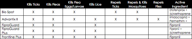 3.     What does the product do? Some products kill just fleas, some fleas and ticks but not flea eggs. Some repel flea, ticks and mosquitos although most do not. Why would you need a product that repels ticks and mosquitoes? Products that don’t repel still allow contact with the pest, which may still be able to transfer disease to your animal. In our area, it is common for animals to get anaplasmosis from deer ticks or heartworm from mosquitoes. If you are concerned about this you may want to consider a topical treatment that repels, such as Advantix II.